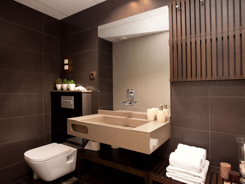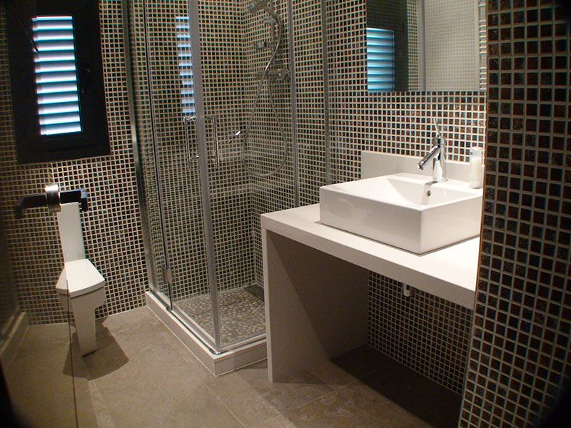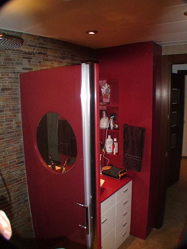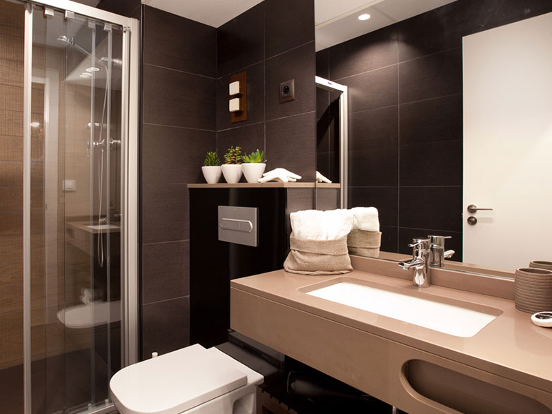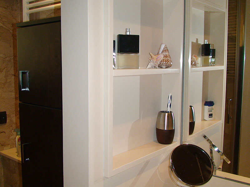 - Hacer divisiones de todo tipo para separar ambientes y colocar en ellas estanterías que, aparte de su gran utilidad, darán a su baño un nuevo aire de modernidad y estilo.