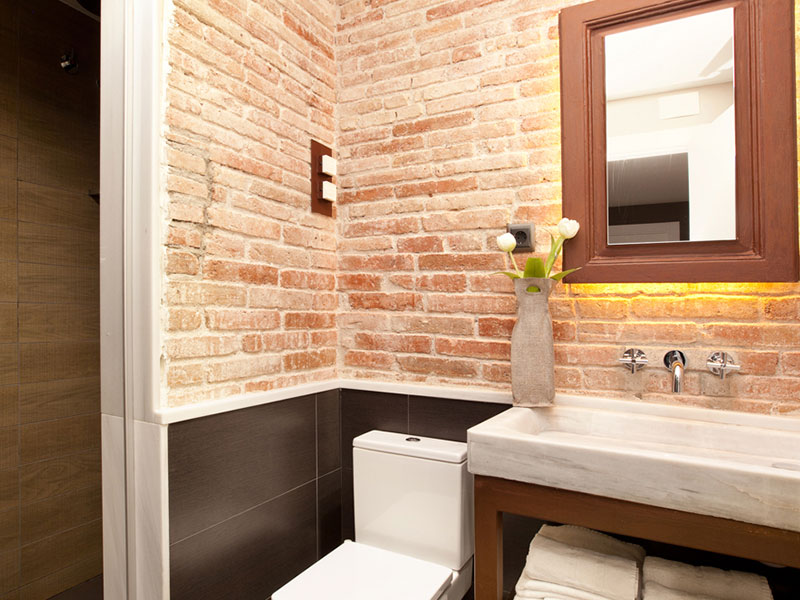 - Hacer divisiones de todo tipo para separar ambientes y colocar en ellas estanterías que, aparte de su gran utilidad, darán a su baño un nuevo aire de modernidad y estilo.