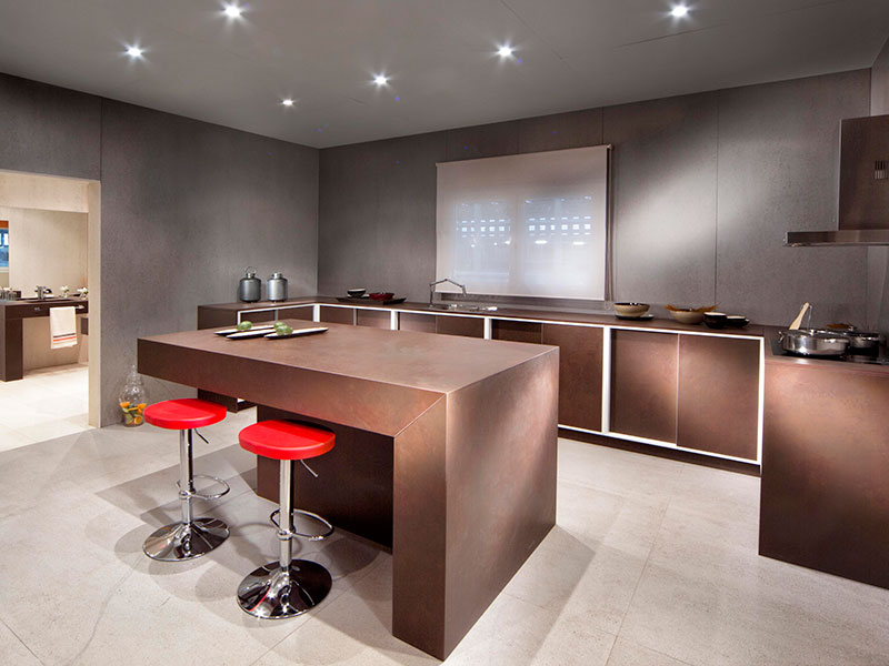 • Picas integradas en la encimera, realizadas con el mismo material.